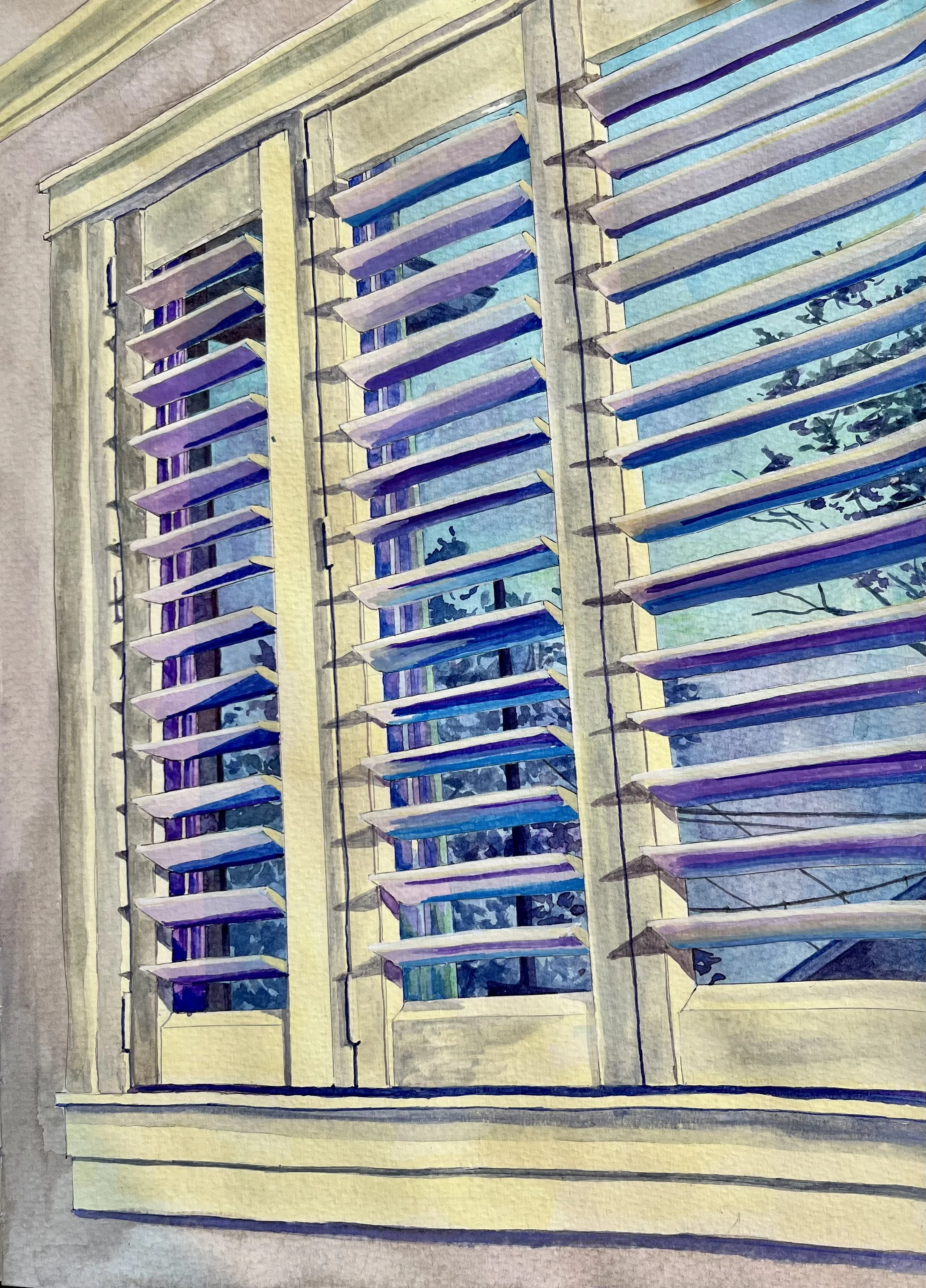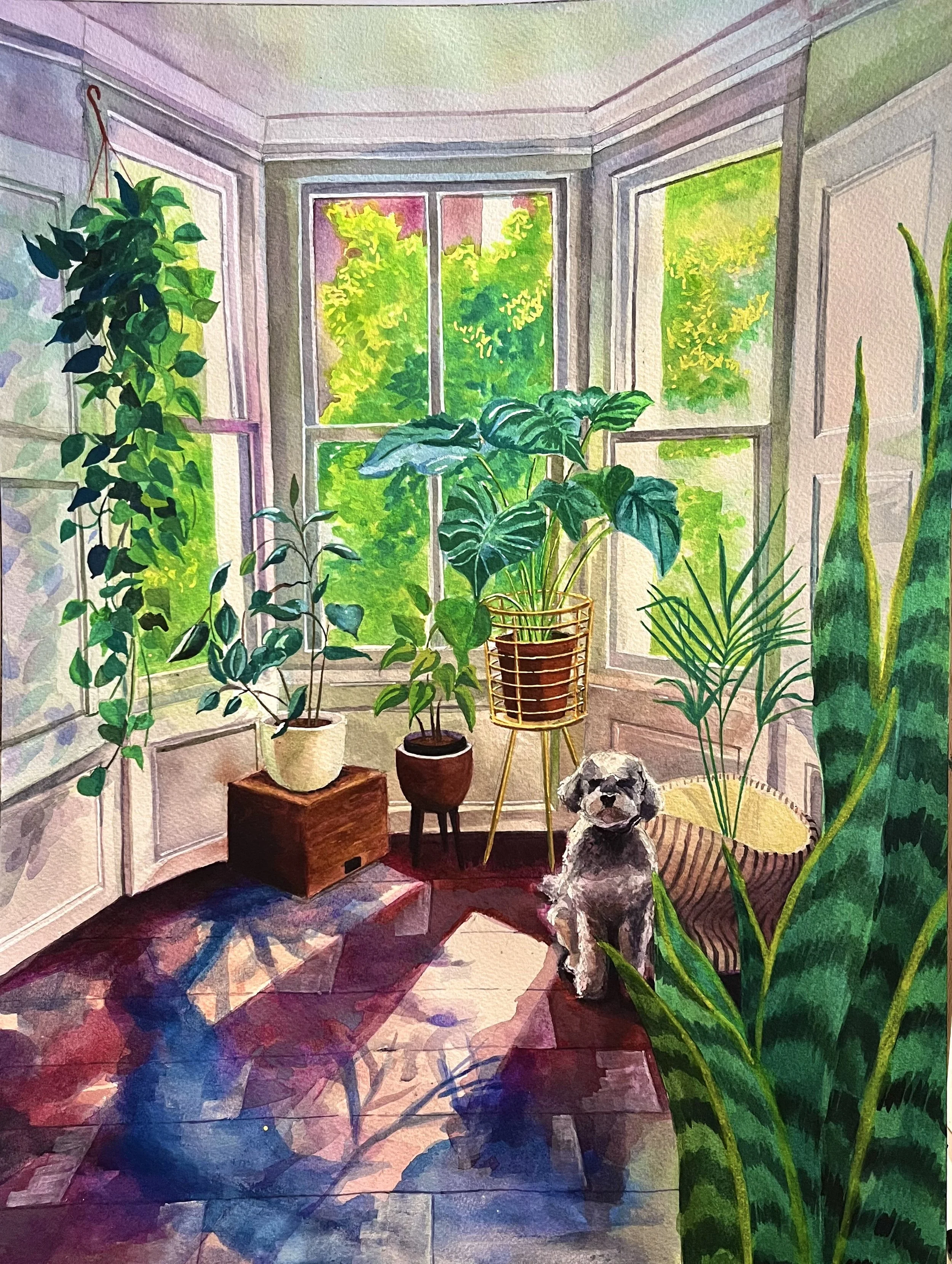 “Room with a view”, 12”x16”, watercolor and acrylic ink on paper, PRINTS HERE!
