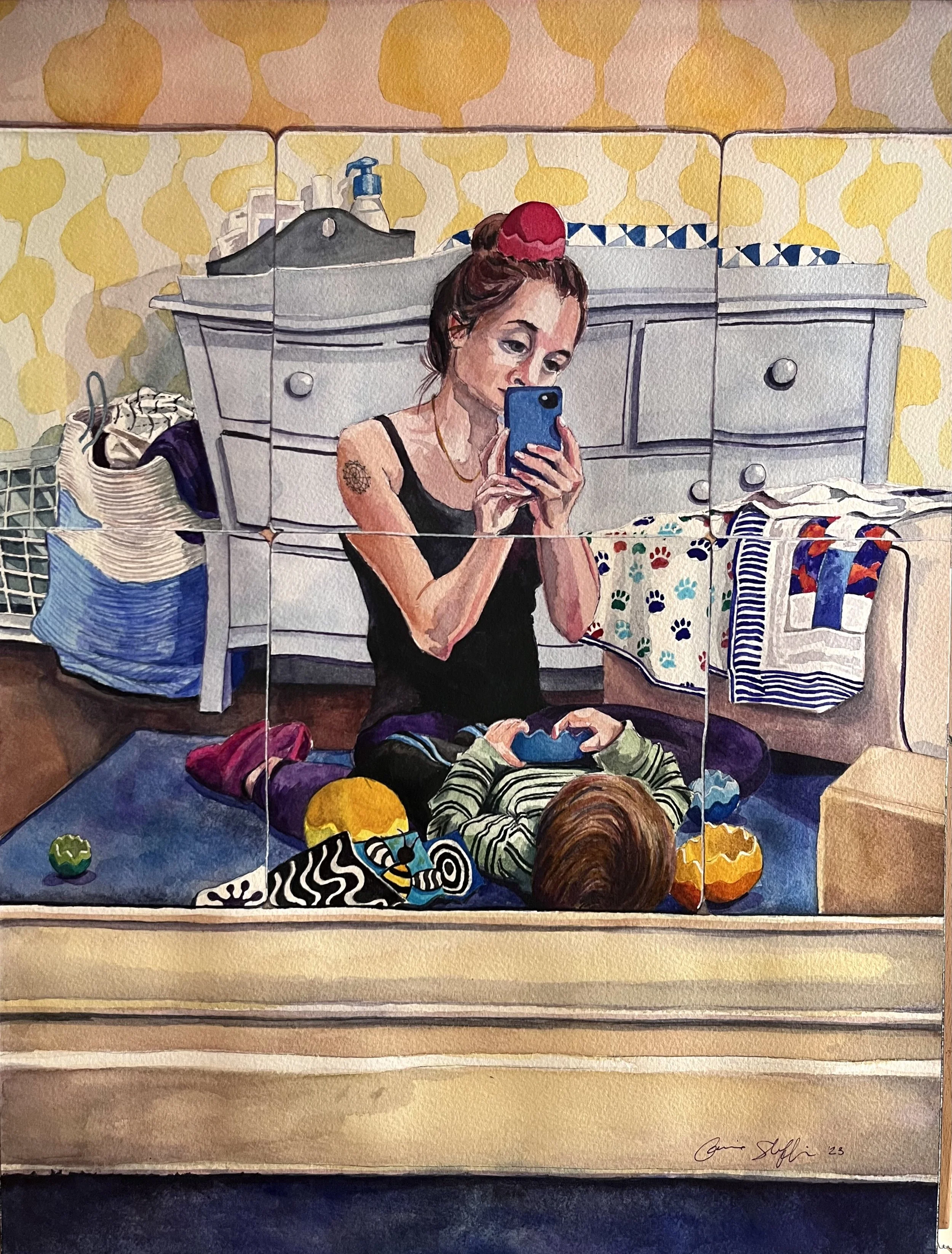 “Motherhood is Strange”, 12”x16”, watercolor on paper, PRINTS HERE!