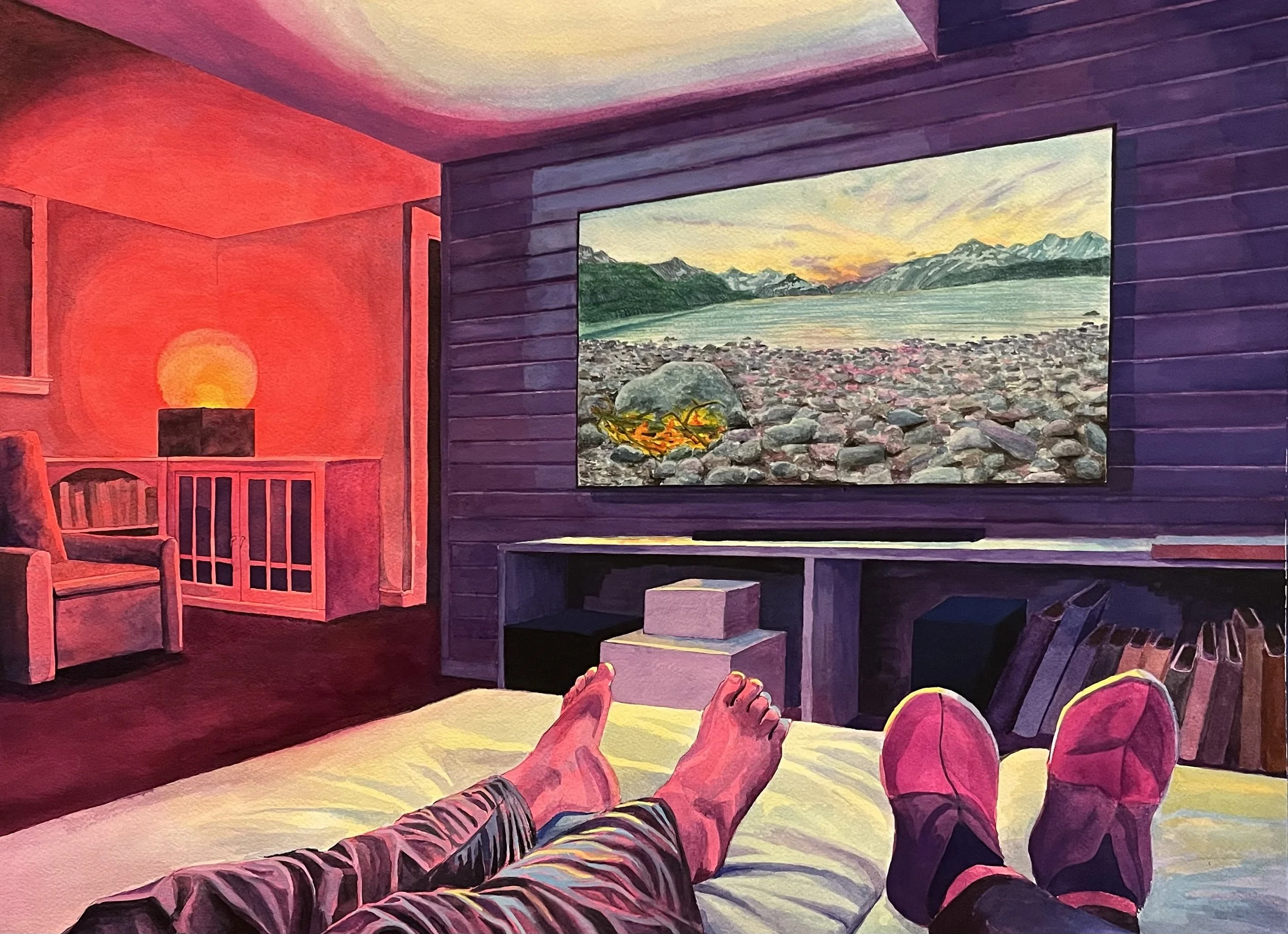 “Henry’s Episode of Cribs”, 12”x16”, watercolor and acrylic ink on paper, PRINTS HERE!